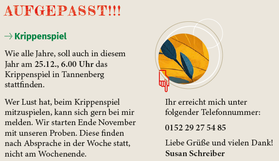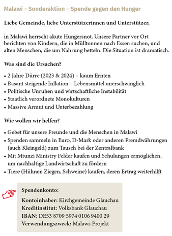 In jedem Fall bitten wir darum, im Pfarramt Bescheid zu geben.